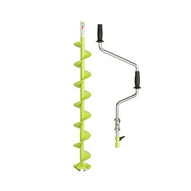 Новейшая система складывания рукоятки имеет осевой замок, что позволяет быстро и легко сложить ледобур в транспортное положение. Ледобуры изготавливаются следующих размеров: 110, 130, 150 и 200 мм. При необходимости, дополнительно, ледобур можно укомплектовать удлинителем. Расцветка ледобура - желтая.